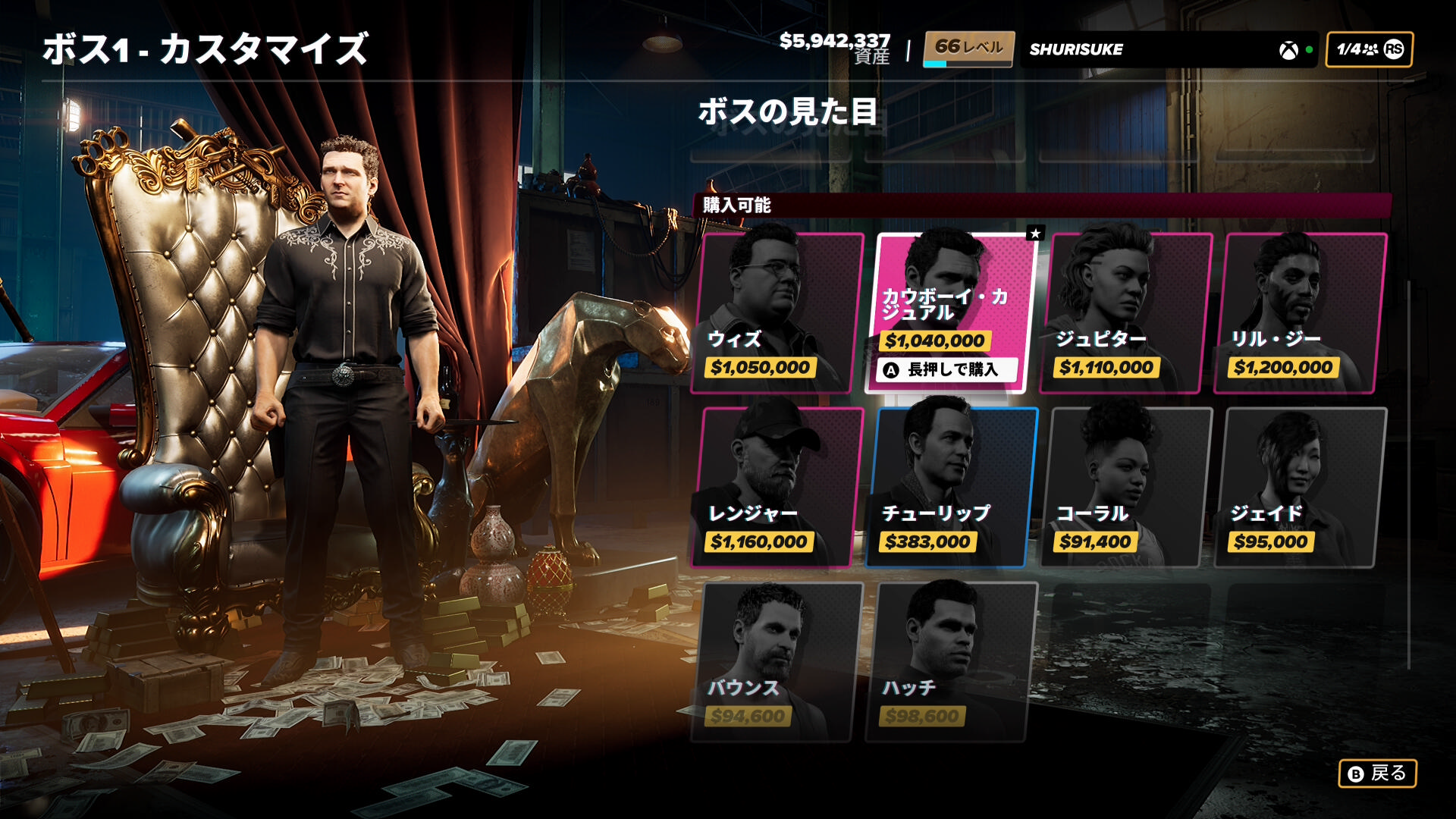 ちなみにボスは5個(5人)まで設定できるらしい。もちろんボスの枠を増やすにはお金がかかる(ゲーム内通貨ね)ので、よほど余らないとできないかなあ。