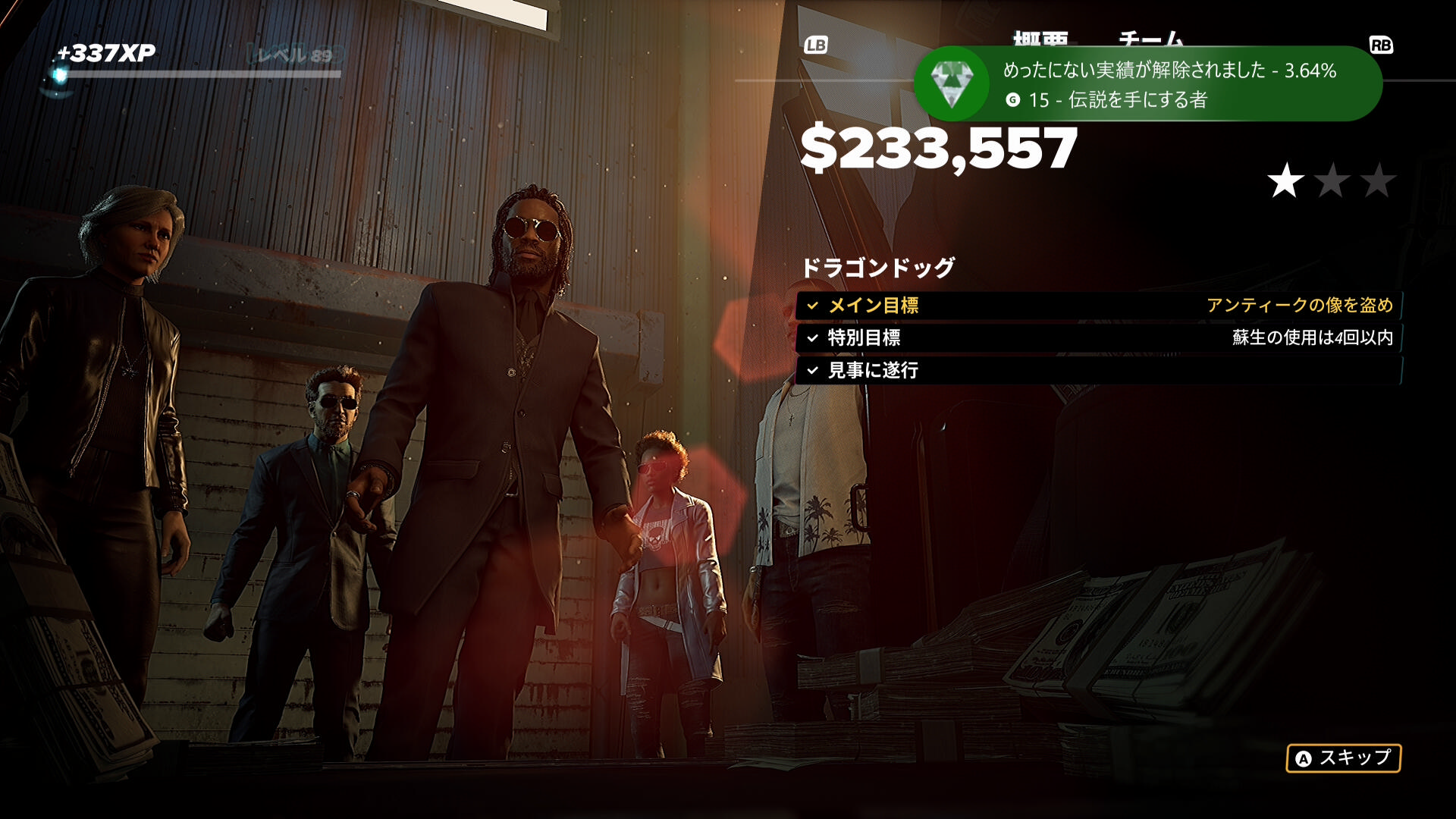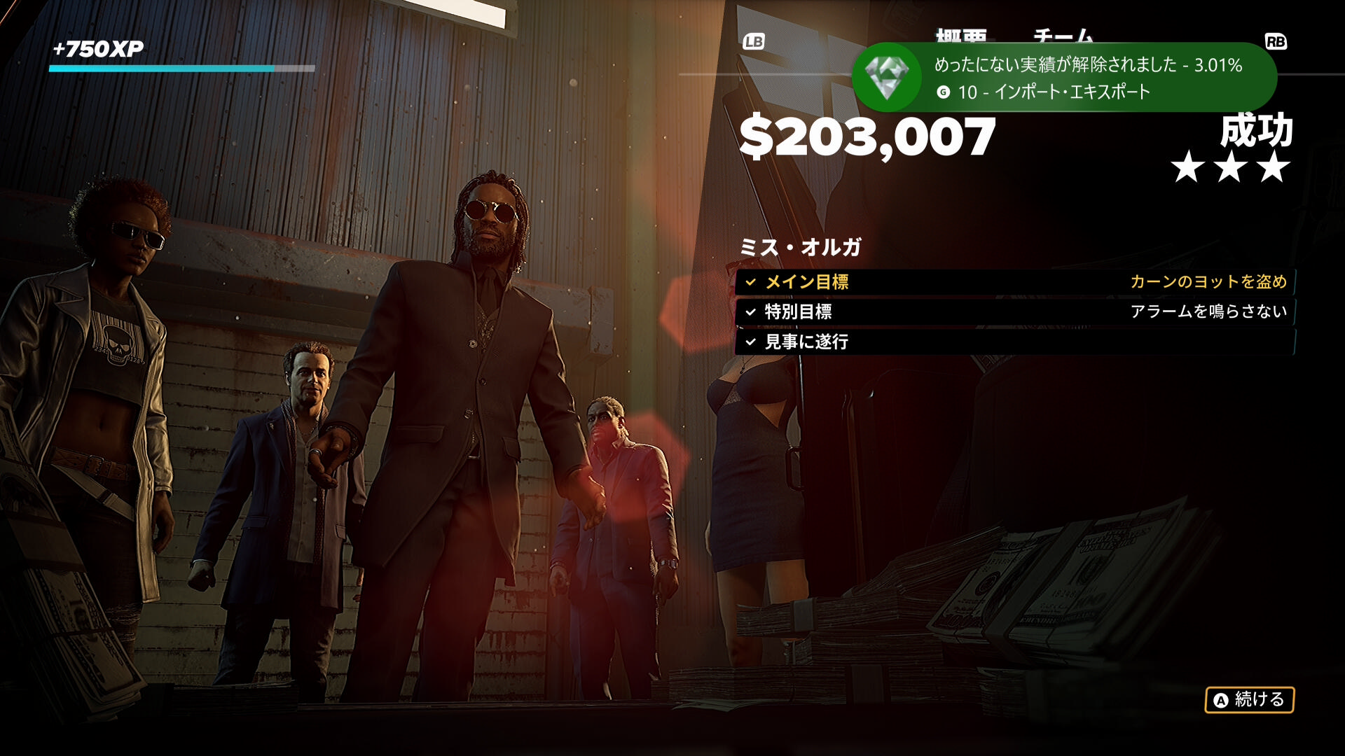 ミッション2はカーンが所有するブツを盗み出すだけ、ミッション3は予想通りインポート・エキスポートだったのでサラッとクリアして実績解除。