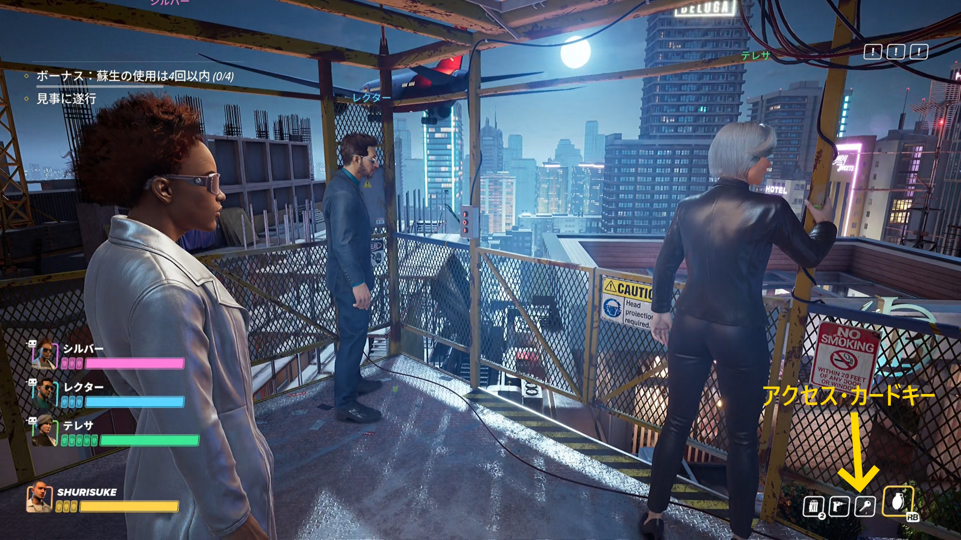 ミッション1は宝石強盗。監視カメラと警備員に四苦八苦しながらも順調にステルスで進めていたのにライダーズ(カーンの手下)が邪魔してきて警報発令されちゃうし。