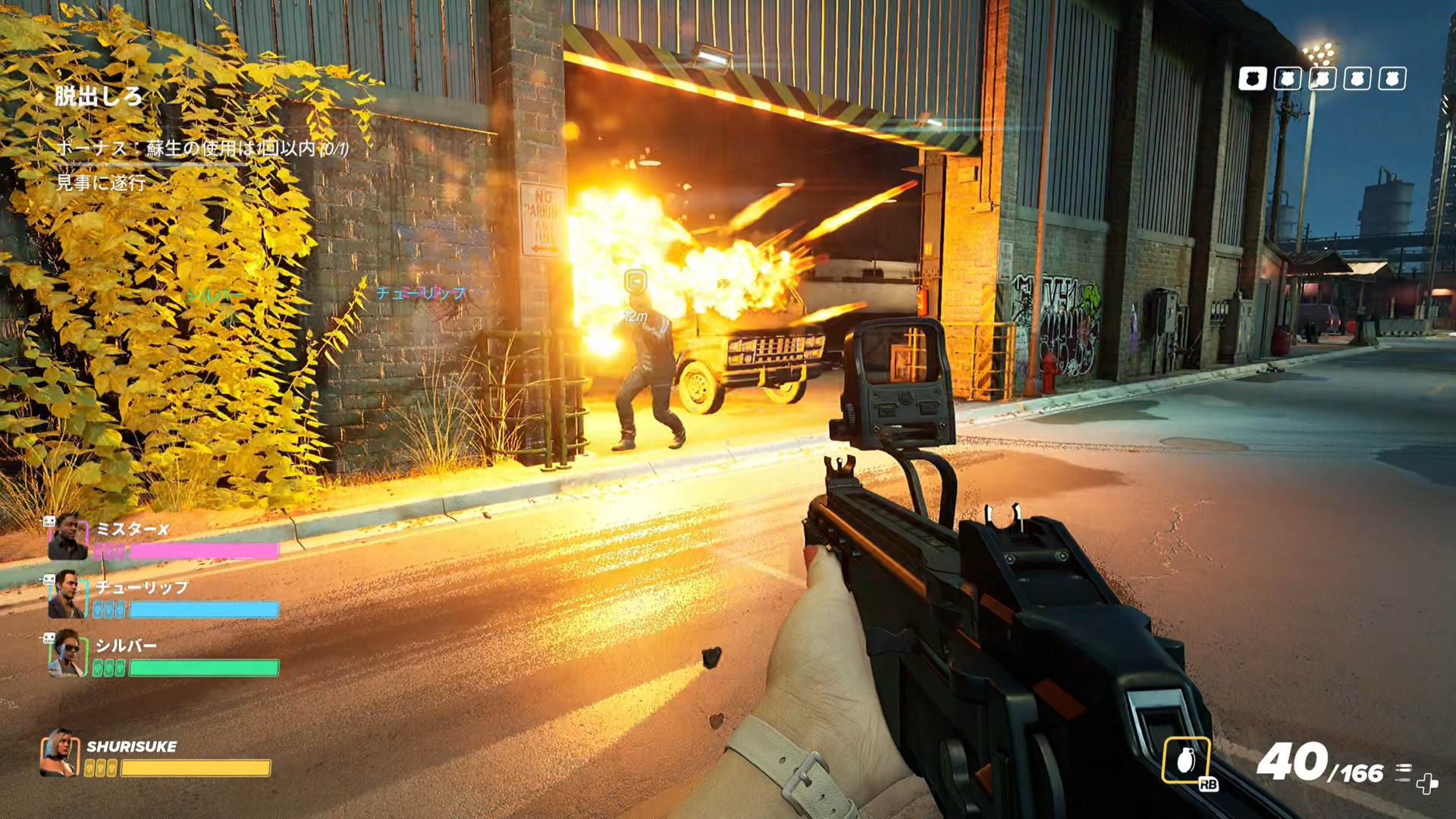 ミッション1はキャンペーンの縄張り攻防戦のような形から開始。しばらくカーンの手下をキルしているとすぐに脱出ポイントが出現。お!早いじゃん!ってバンに近づいたらまさかの爆発!さすがにそんな早くクリアはさせてくれないか。