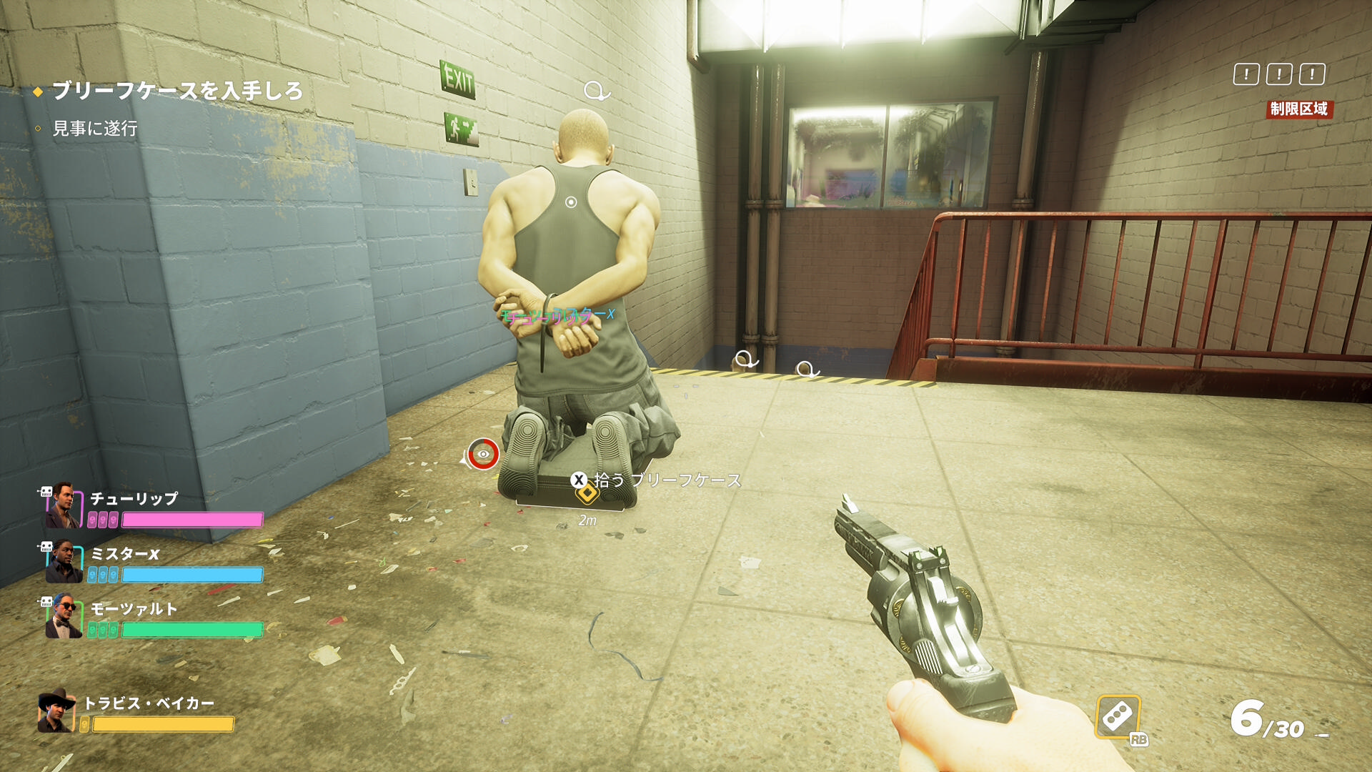 たまたま近くにいたのでターゲットからブリーフケースを奪うことでうまくいきました。その後、何度かやり直した結果、取引が終わると固定のルートで外に向かうみたいですね。ルート上で待ち伏せしていればラクに奪えます。