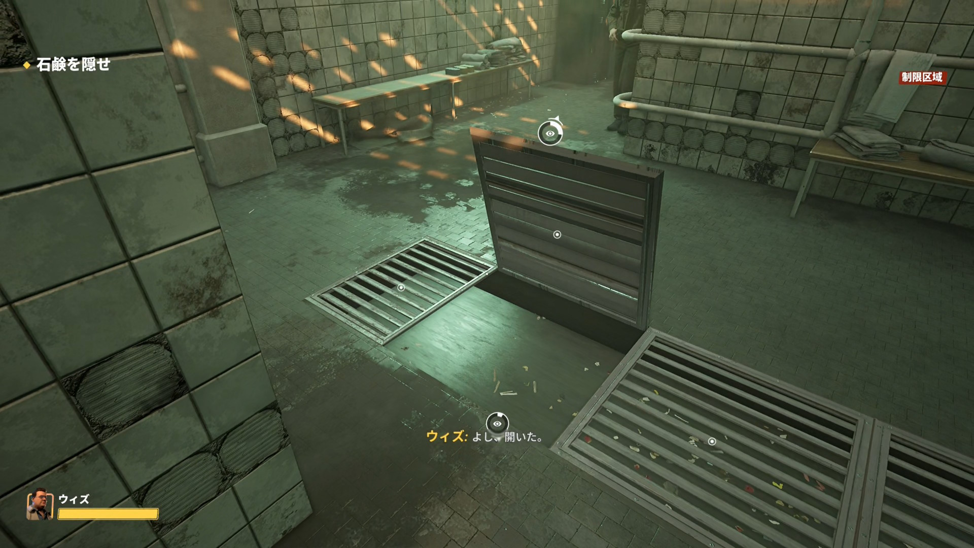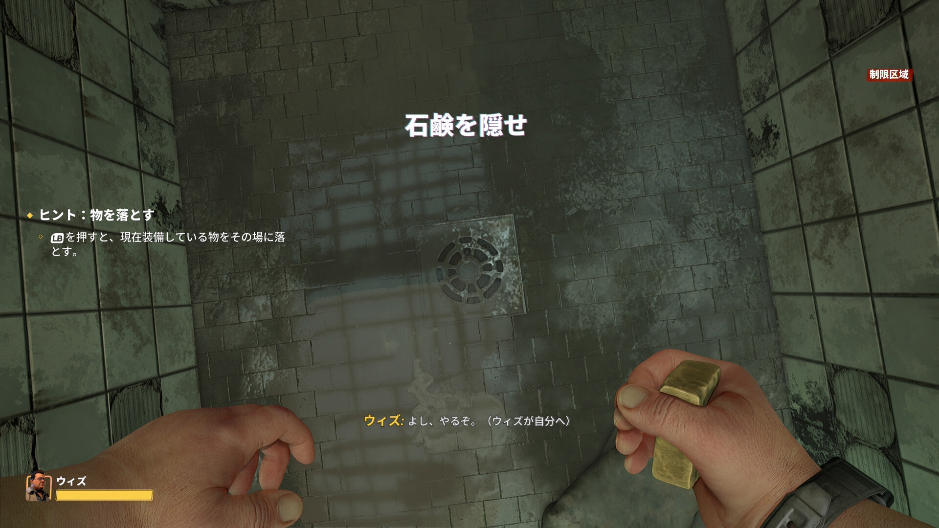 排水溝は蓋がついていて、それを開けてから石鹸を捨てるのですが、どの蓋が開くのかがランダムになっていて苦戦。排水溝の蓋はシャワー室に40枚あり、看守が巡回する中で開く蓋を見つけるのに難儀しました。