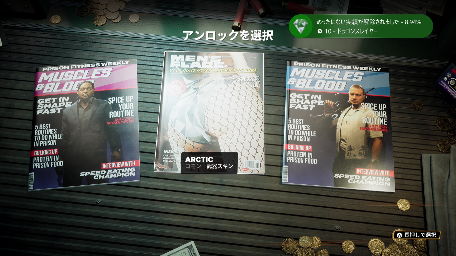 ドラゴンドッグ同様、ラストはかなり激しい戦闘となりましたが、無事に ”隠し金庫” をクリアして実績解除。獲得報酬がすごいことになっていたけど、終わってみればドラゴンドッグと大差なかったのでガッカリ。もちろん、家具は買えませんでした。これ、いつになったら購入できるのかな?