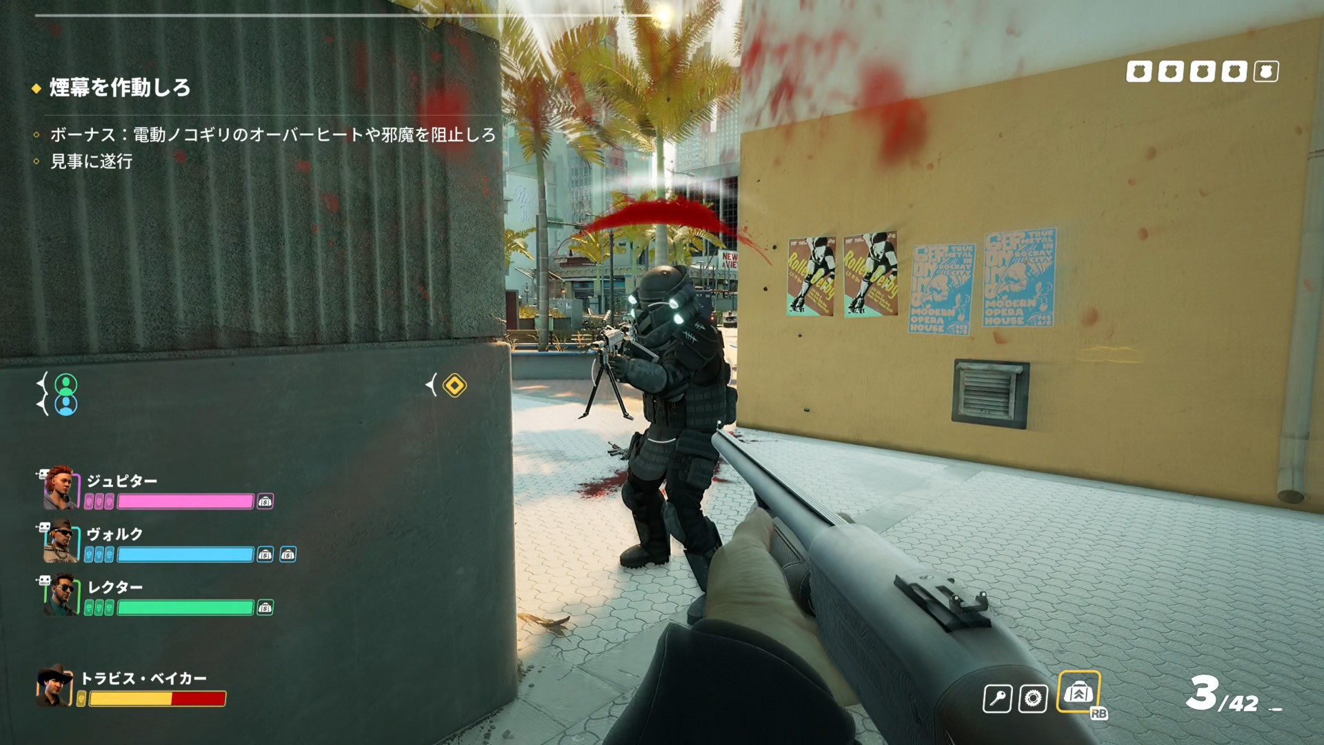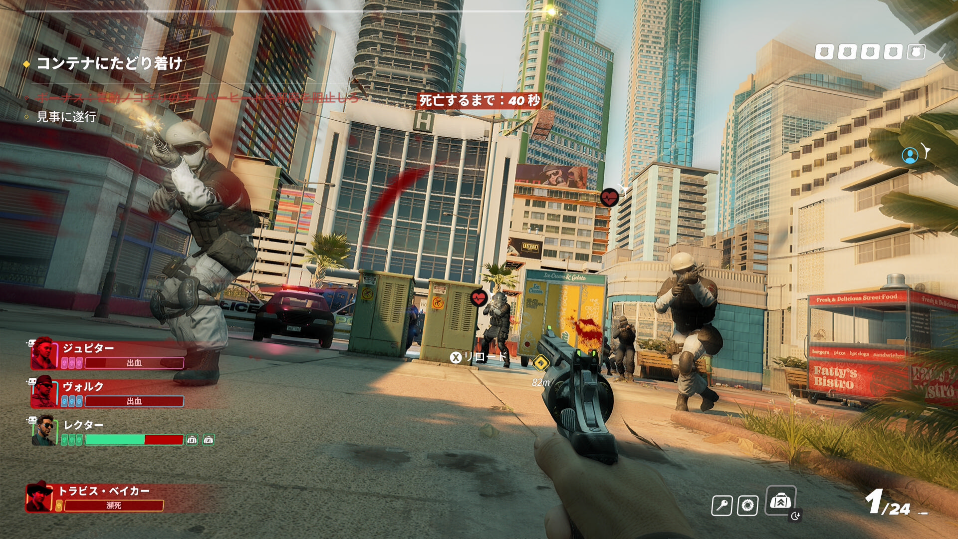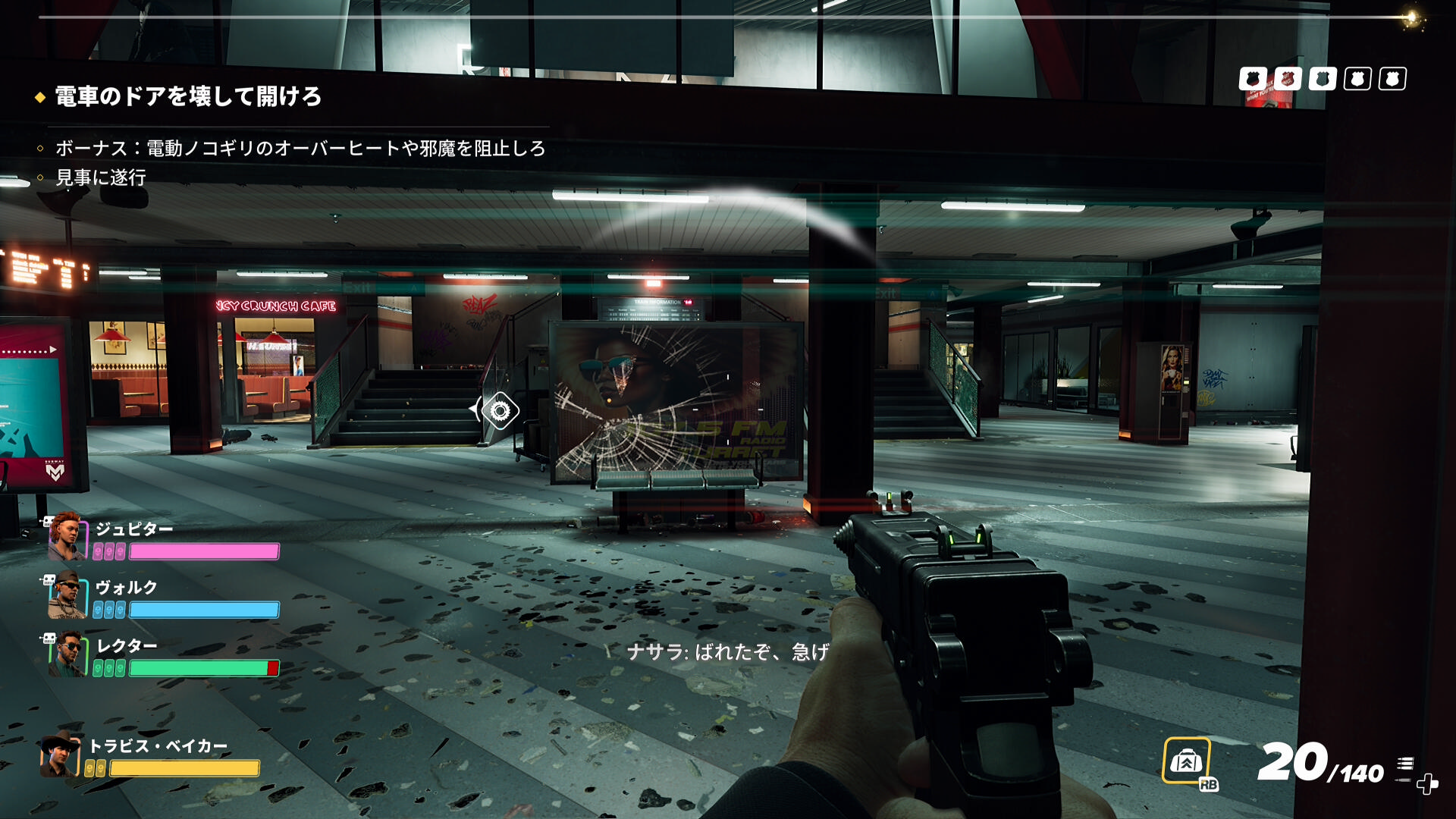 しかしねえ、駅から出ろと指示されるのですが、どこから出ればいいのか迷う。語弊のないように言うと、駅には3箇所の出口があるのは理解していて。でも、出口に向かうと ”ミッションエリアに戻れ” と表示が出てしまい進めない。結局、出口は3箇所あるけれど、都度ランダムにどこから出られるのかが決まるみたいね。激しい戦闘の中、できるだけ早く脱出したいわけですが、どこの出口から外に出るのかが決まっているなんて解らないっての。