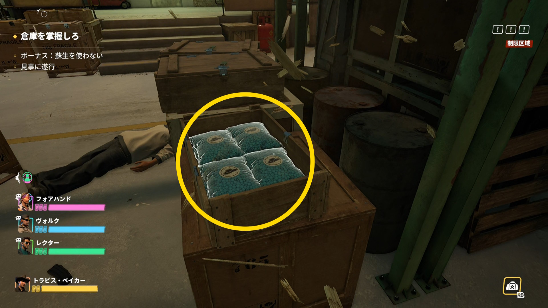 ランダムだから仕方ないけど、倉庫の前でパーティーしないでほしい。やりにくいのよ。