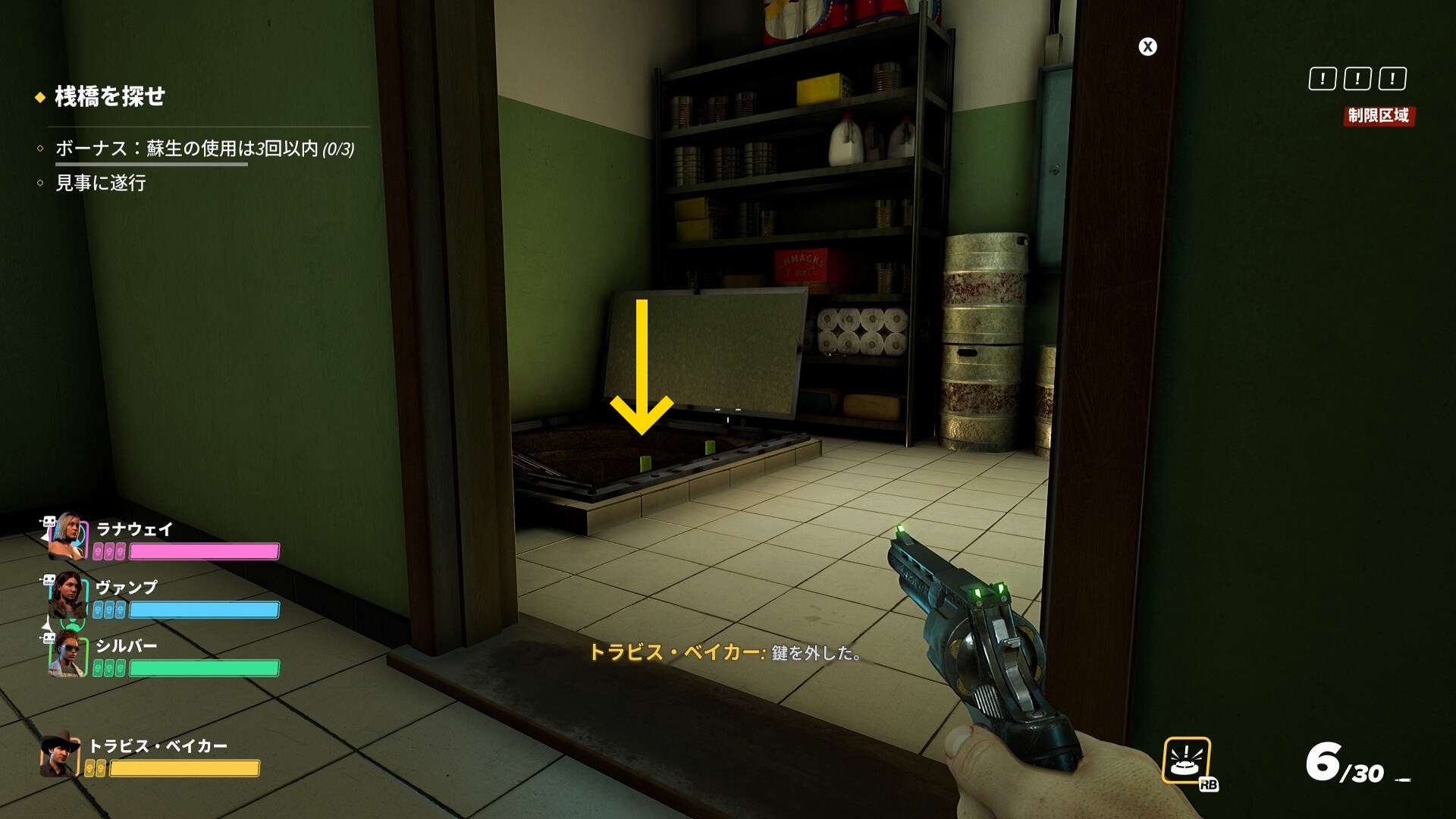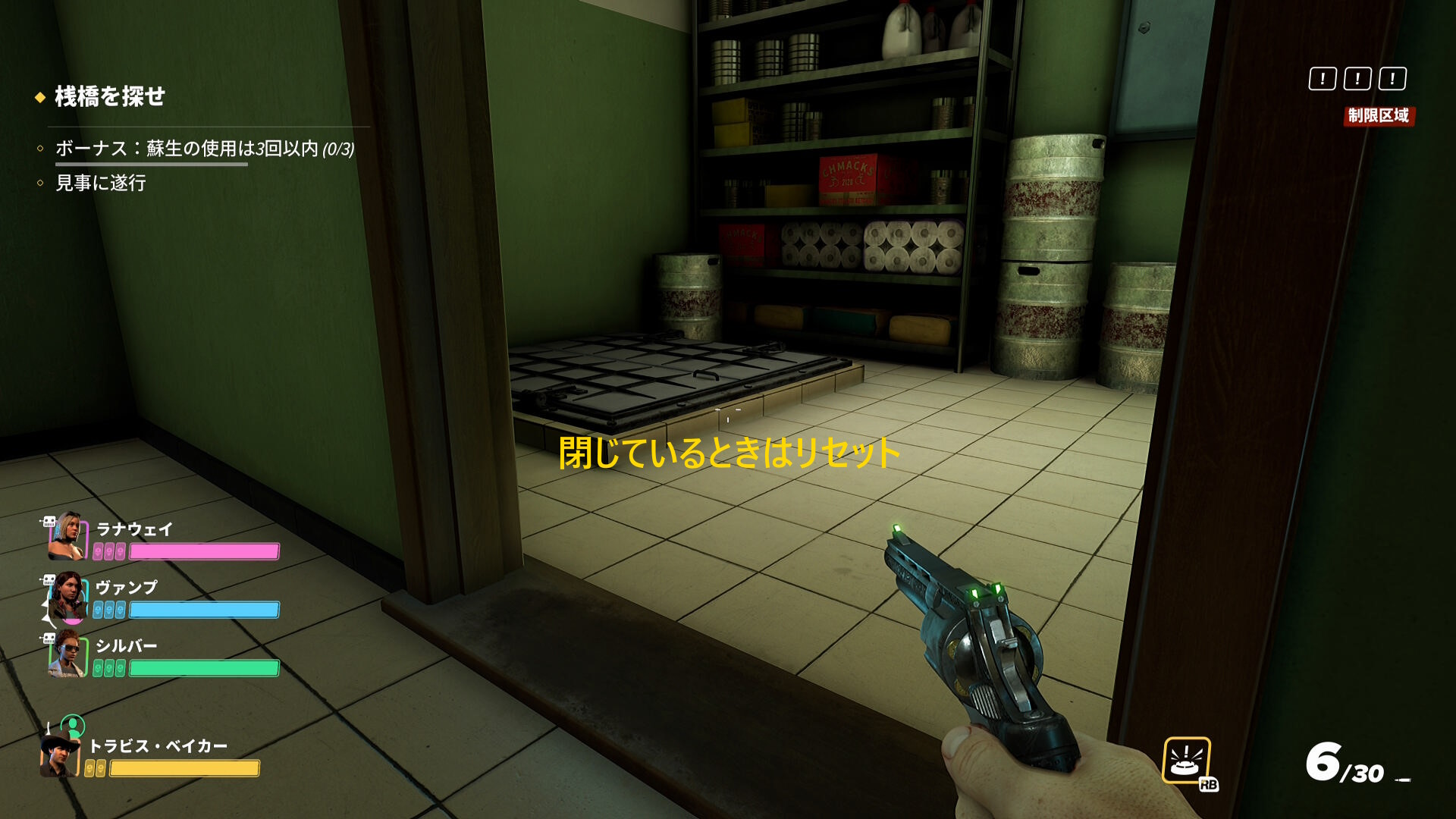 ちなみにハッチを開ける方法(例えば鍵を見つける、スイッチを見つけるなど)を探してみましたが、そんなものはなく。ハッチが閉じていればリセットするしか方法がないのがつらかった。