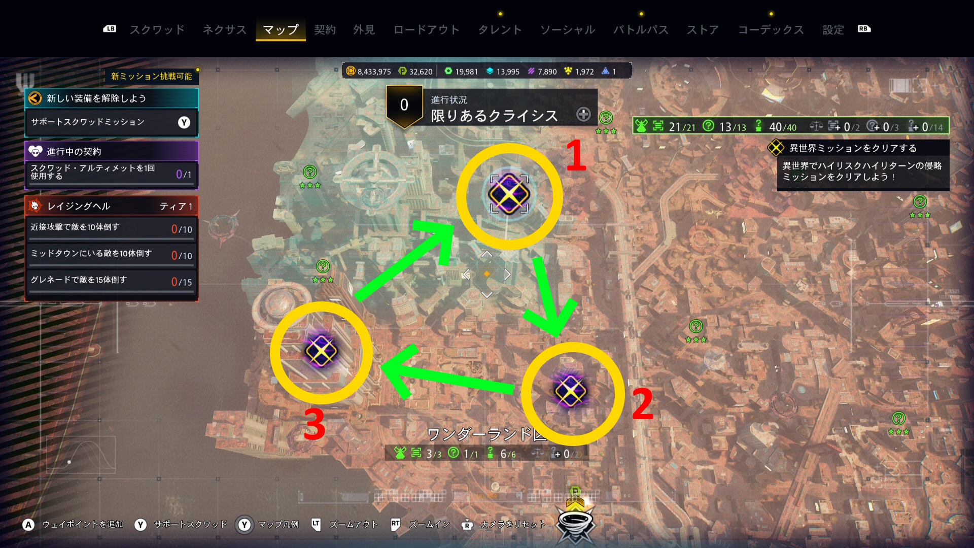 とりあえずマップを眺め、新たに出現したミッションアイコン3個を片付けることにしました。”侵略ミッション” という名称だそうな。