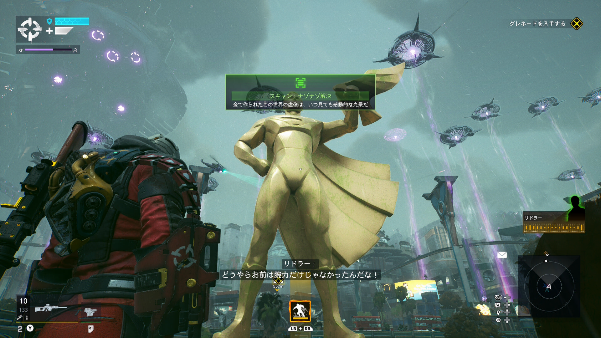 ”ウォラーと話をしろ” というミッション目標だったので彼女のところに向かうも一緒にいたフラッグにどやされてメトロポリスに放り出される。なんだよもう~。