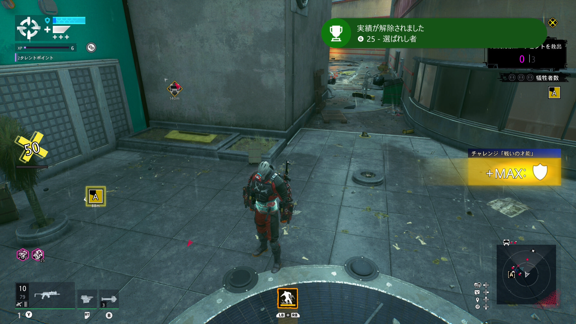 そこではフラッグが A.R.G.U.S. の仲間を救出しろと指示を出してきました。敵を倒しながら3人を救出していきますが、ここでも ”チャレンジ「戦いの才能」” が発生。