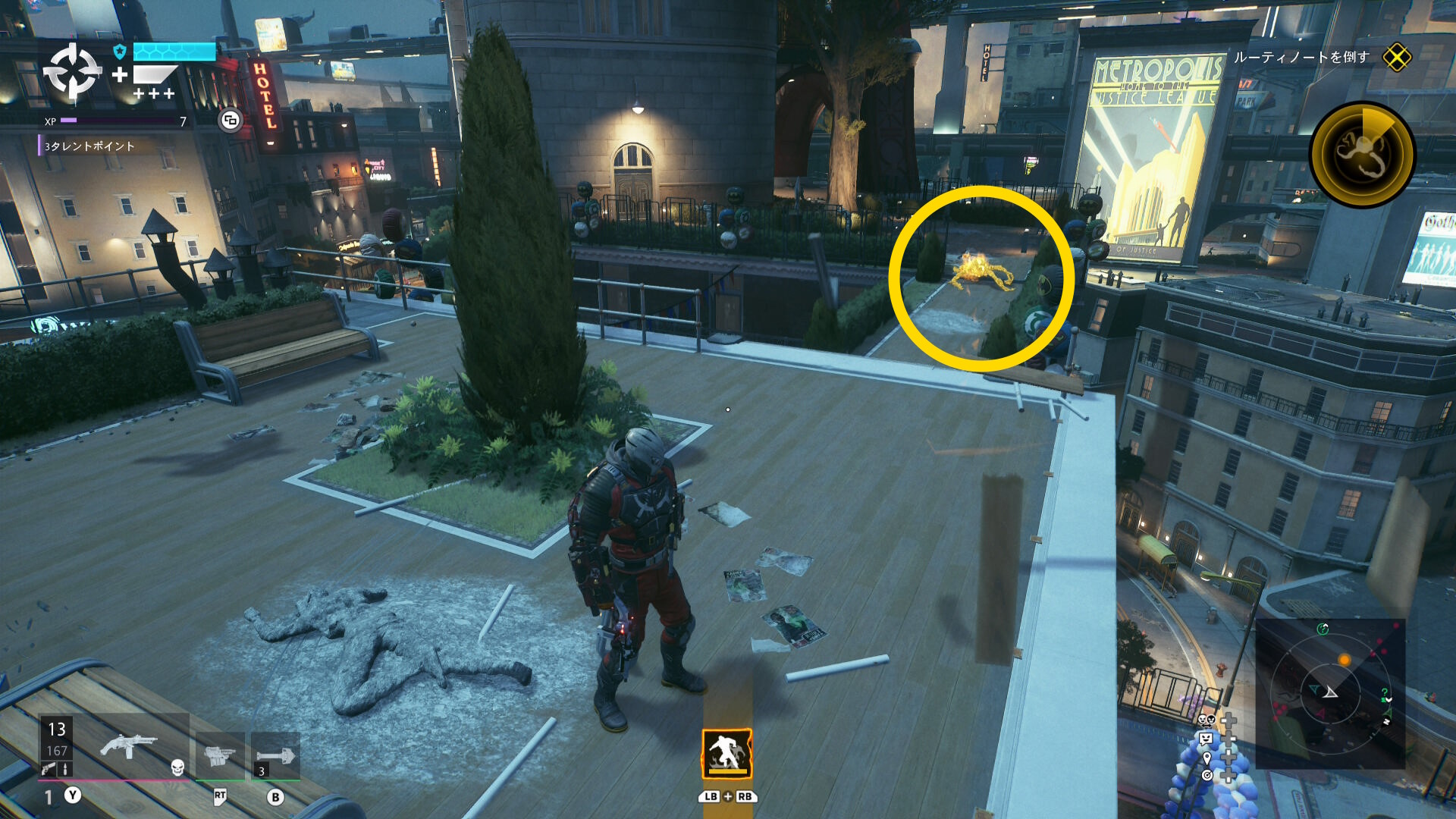 スタジアムを出て、リドラーのナゾナゾやトロフィーを回収しながらミッションマーカーに向かいます。
