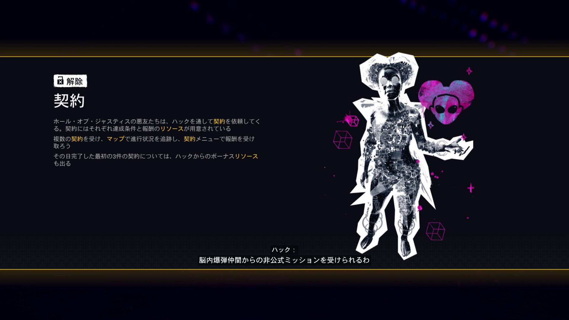 ハックの依頼をクリアすると ”契約” という、おまけ要素が解禁になりました。