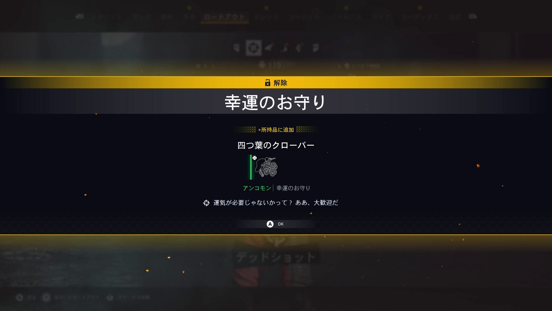ミッションクリア後、幸運のお守りがアンロックされたと報告あり。これは一体何事?と思いましたら……
