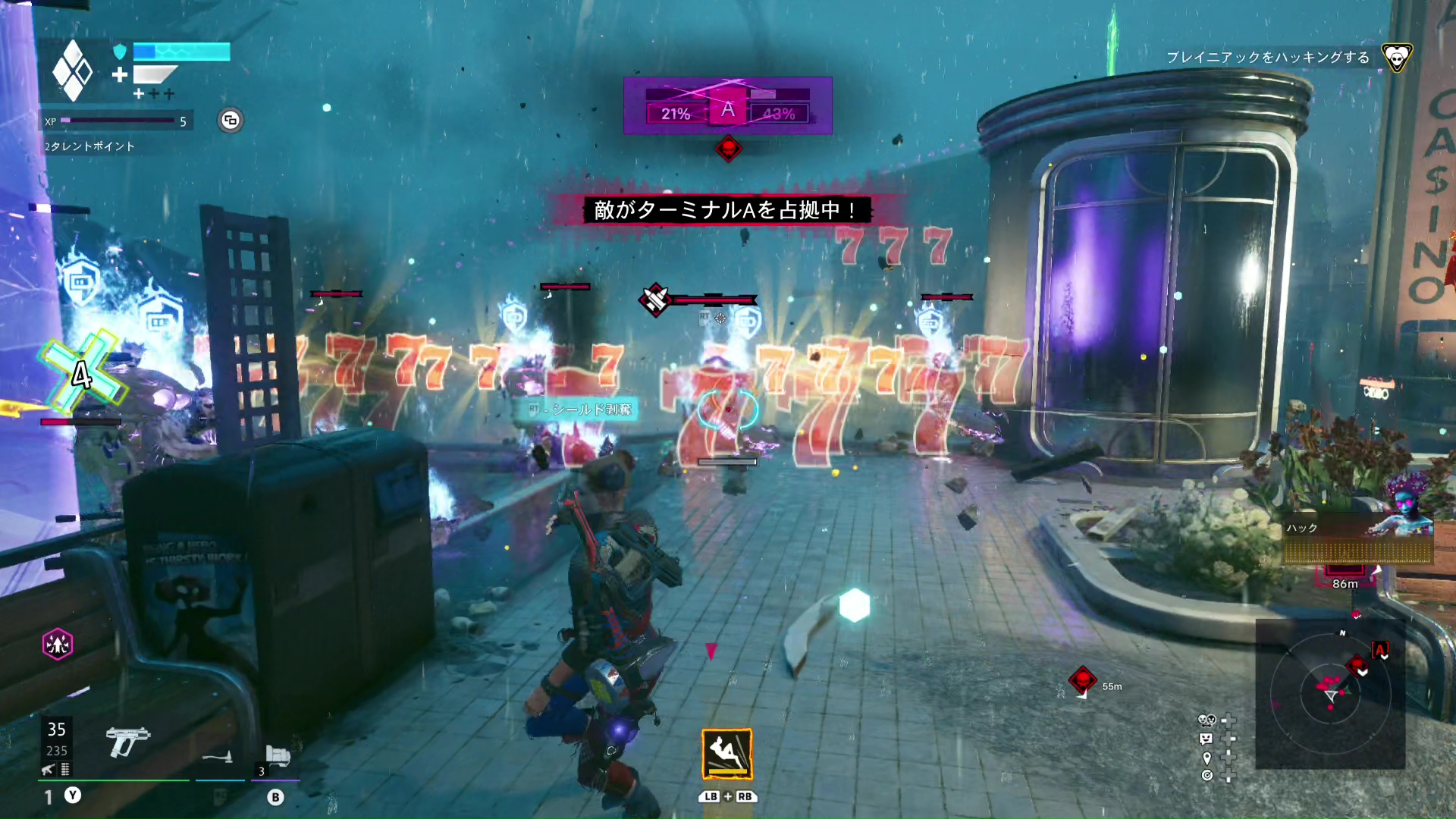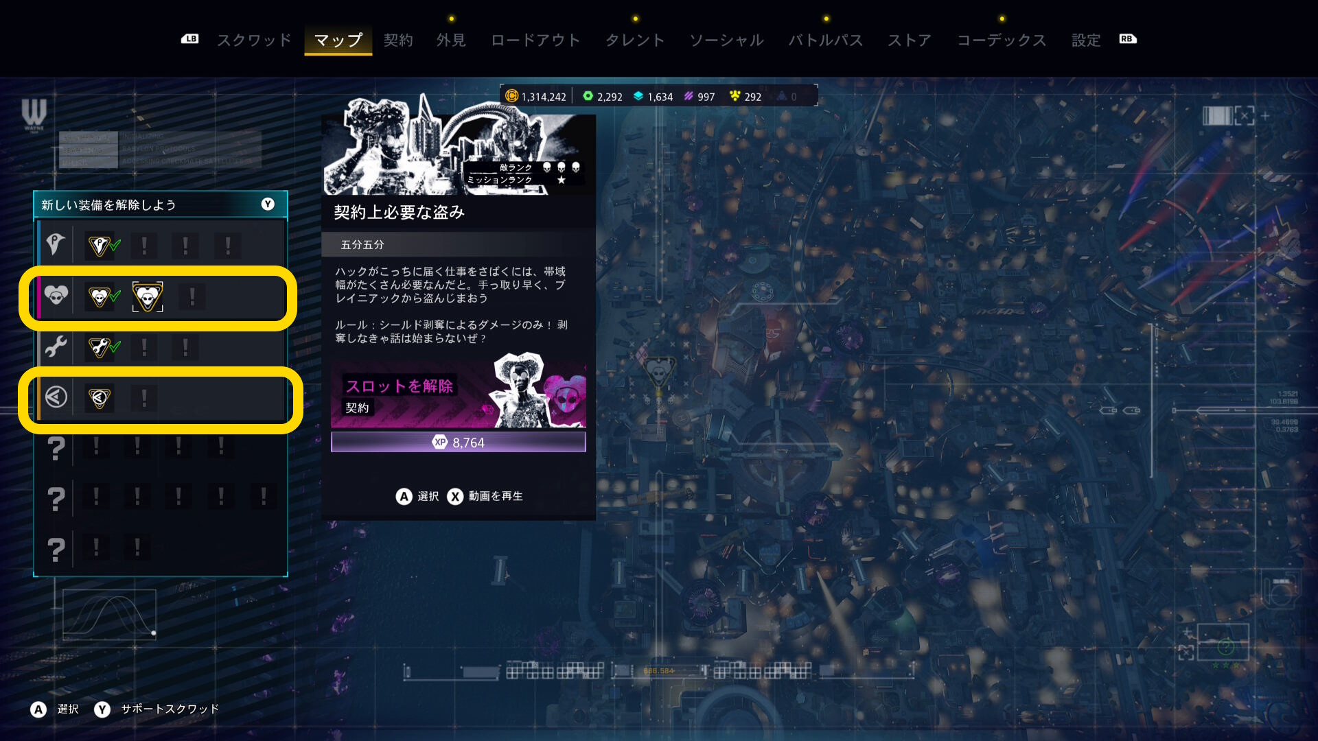 ハック(2回目)のサポートスクワッドミッション。相変わらずシールド剥奪だけでしかダメージが与えられないのできつい戦い。さらにハーレイ・クインが ”準備万端” なので操作しにくく大変でした。