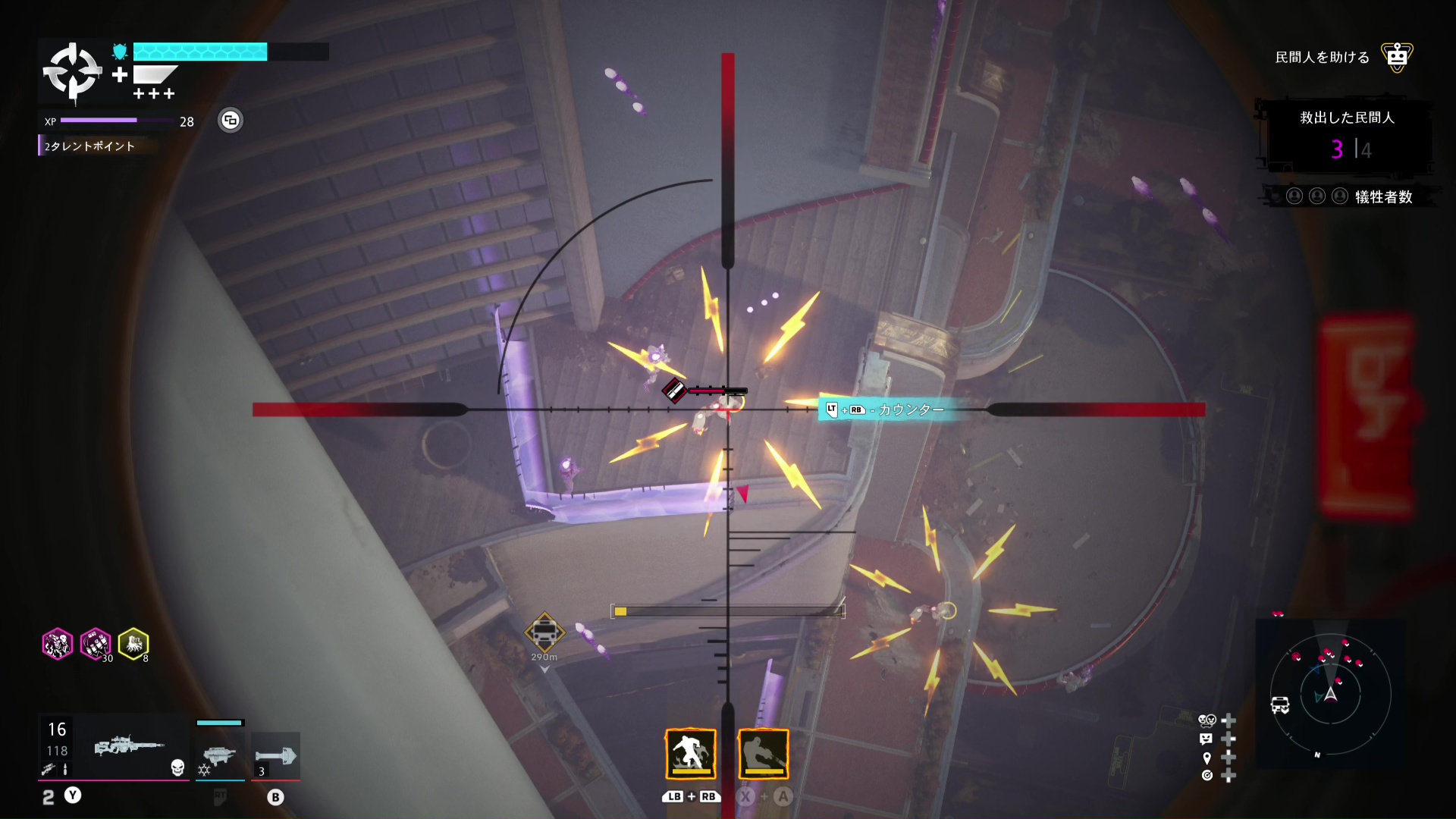 準備万端のキャラは経験値アップなどのボーナスは美味しいけれど、クリアできないのは本末転倒。デッドショットに交替してちまちまと狙撃を繰り返しながらクリアすることに。