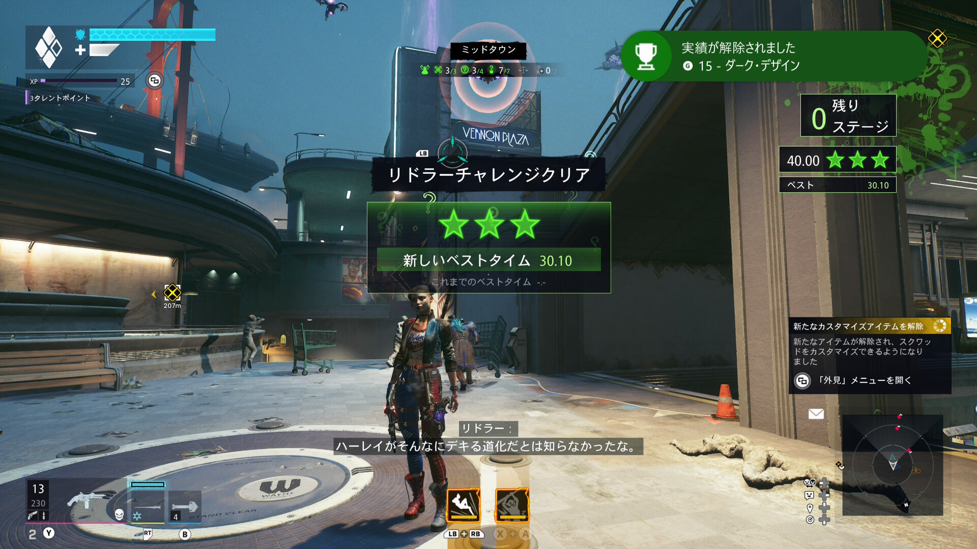 ハーレイ・クインが推奨キャラになっており、契約をこなす間に操作に慣れたこともあってかなり余裕をもってクリアできました。やっぱり操作に慣れるのって大事だね。