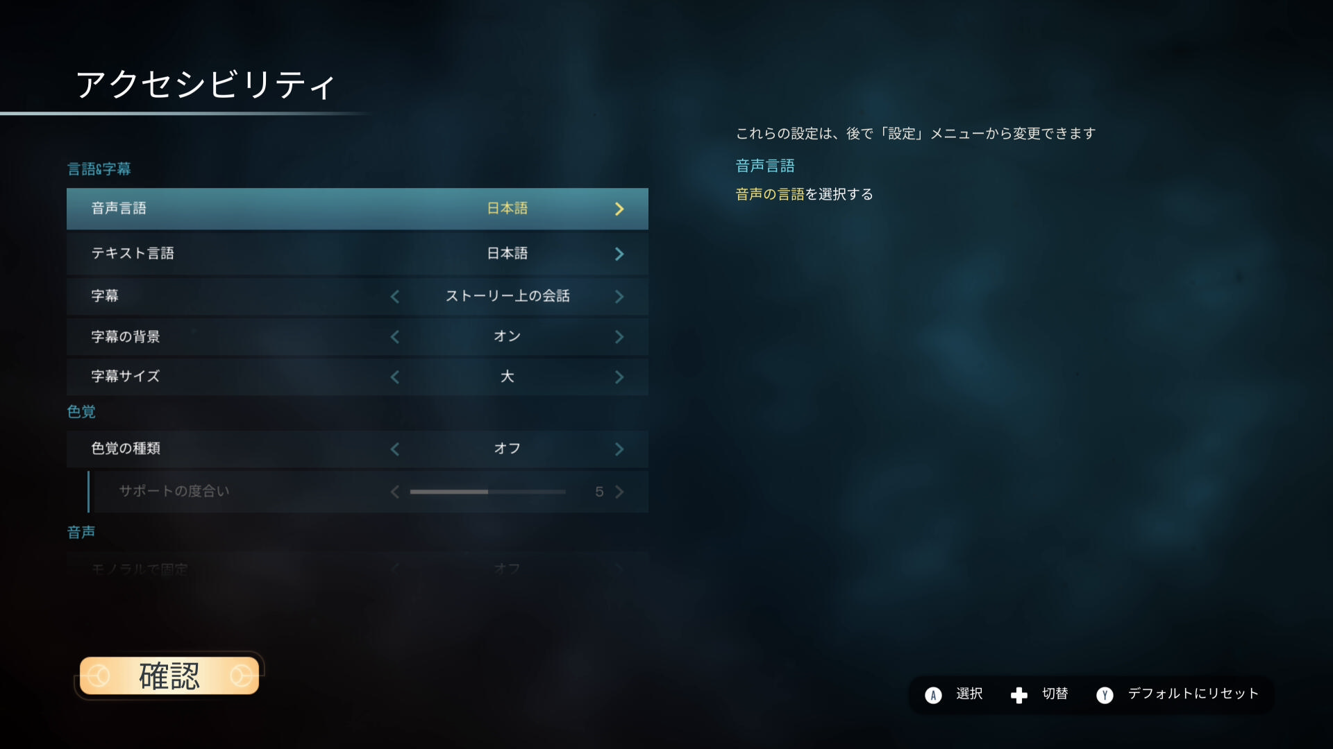 ゲームを起動しますと日本語ローカライズ済みでございますよ。さらに音声と字幕も日本語になっており、大変助かります。バンナムさんありがとうございます。