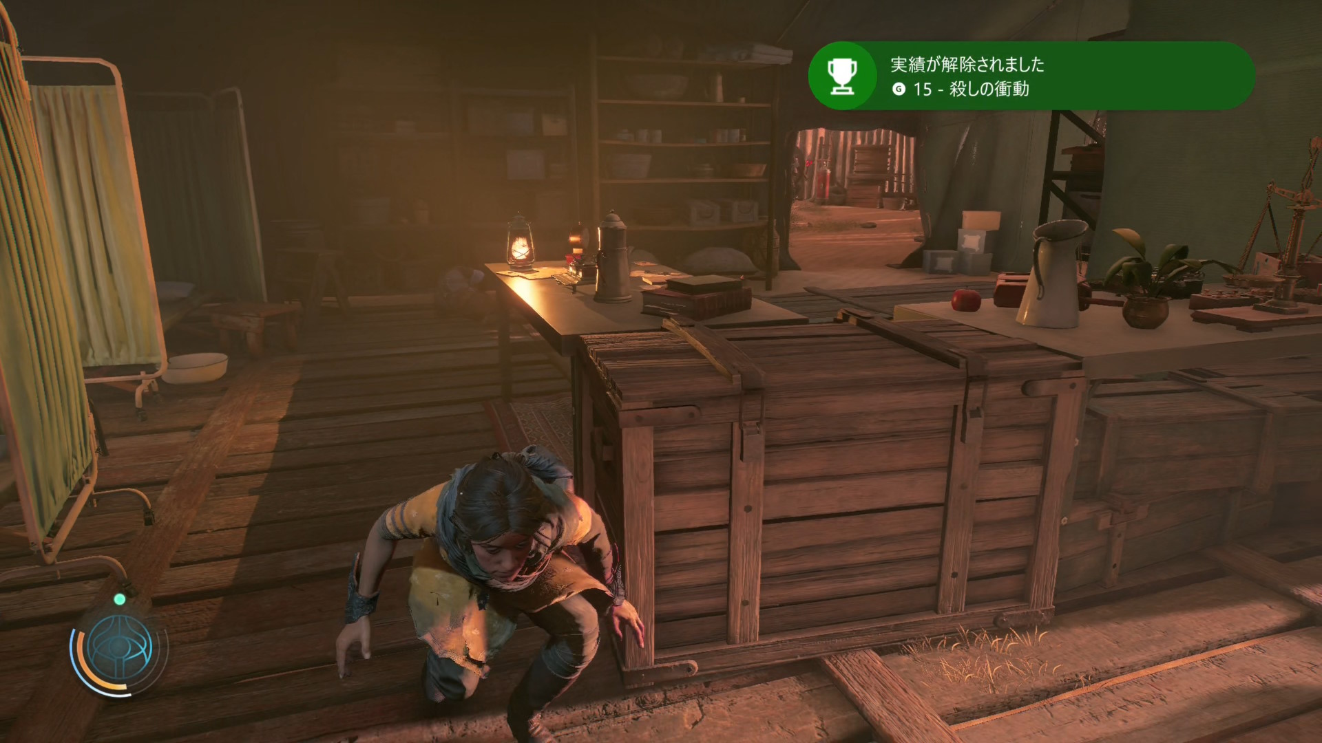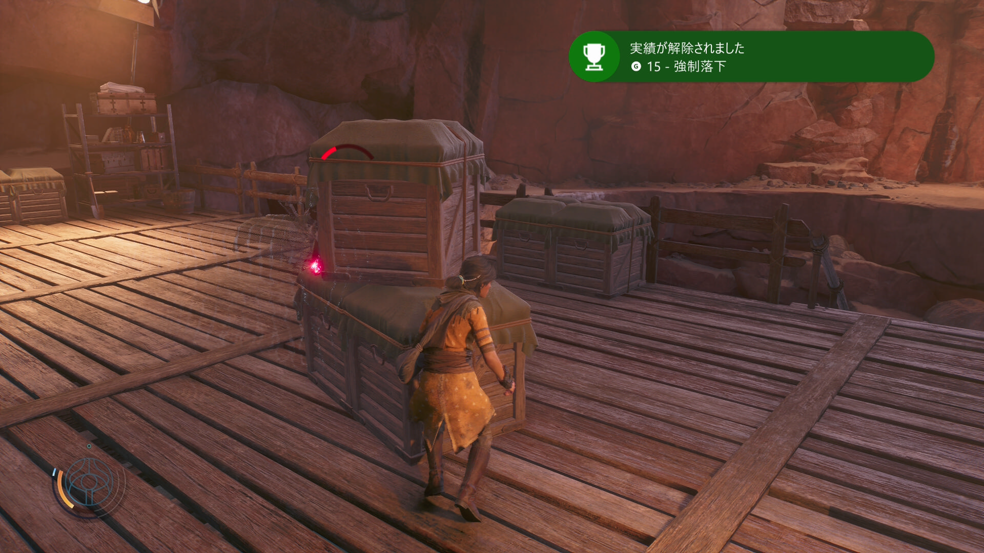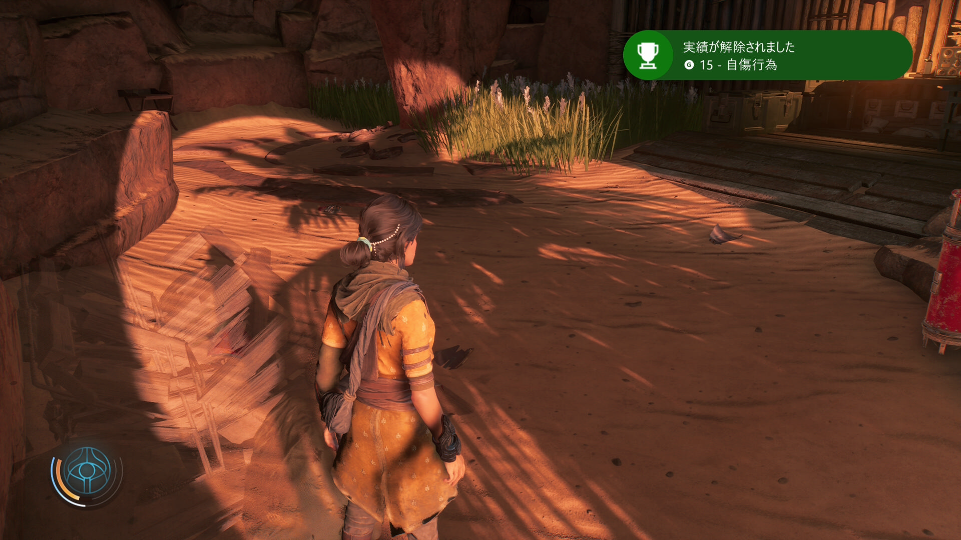 爆発するガスボンベをわざと起爆し、ダメージを受けることで実績解除。本作初の実績が解除されました。ストーリー系、収集物系、スキル系、戦闘系とまんべんなく設定してありますが、戦闘系が少しむずかしそうな気配。