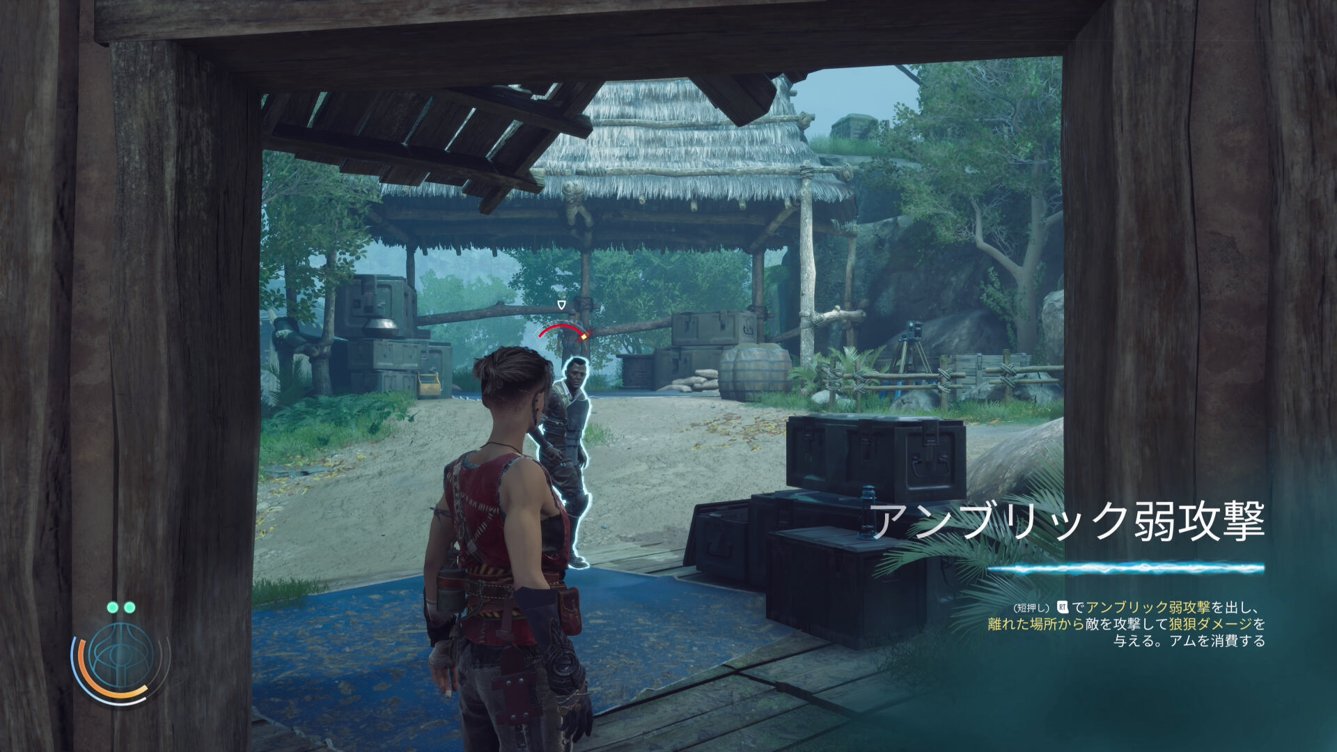 ここまで出てきた敵の中にブルーザーというのがいるんですが、こいつは ”エリート・アセンダント” と呼ばれるやつで、いわゆる敵の上位版。頭上に盾のようなアイコンがある敵は通常のテイクダウンができないんですね。