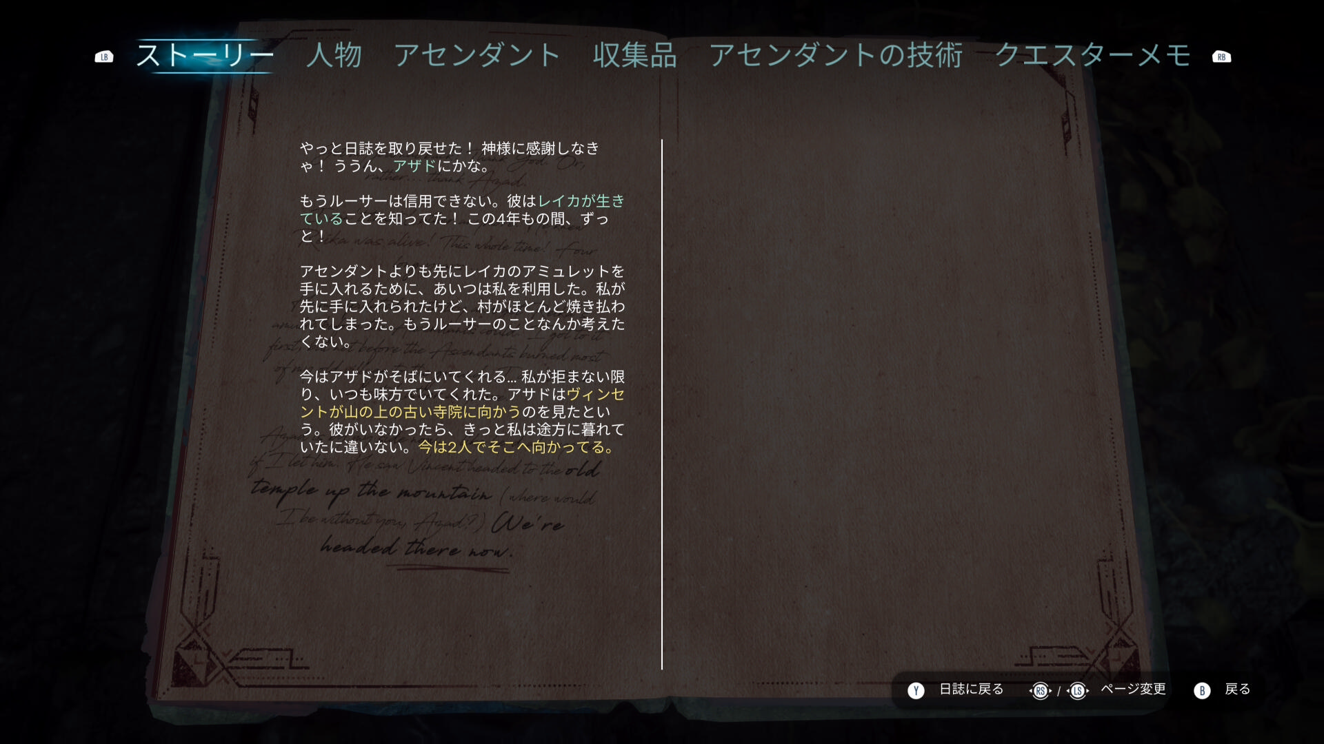 寺院にはヴィンセントがおりまして4年ぶりの再会。レイカはやはり生きていて『今はいるべき場所にいる』と。